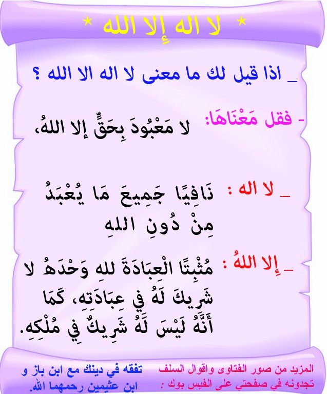 معنى لا إله إلا الله. لا إله إلا الله تفلحوا. ما معنى لا إله إلا الله إن أول أركان الإسلام هي شهادة أن لا إله إلا الله وأن محمدا رسول الله وبدونها لا يصح الإسلام وتحرم النار على من لم يصدقها قولا وقلبا وعملا قال رسول الله صلى الله عليه وسلم من شهد أن لا إله. ما كان للنبي والذين آمنوا أن يستغفروا للمشركين ولو كانوا أولي قربى من بعد ما تبين لهم أنهم أصحاب الجحيم.