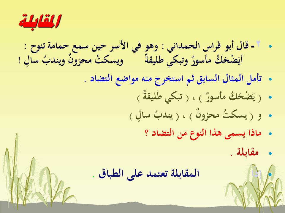 فمهنة المعلم هي واحدة من أهم المهن التي لا تؤثر فقط على شخص واحد أو شخصين أو مجموعة من الناس. ومن ذلك في الأسلوب القرآني قوله تعالى. إن البلاغة هي واحدة من أصناف الفنون الأدبي ة التي تعتمد وبشكل أساسي على س بك اللغة وتنميقها وزخرفتها كأن ها قطعة من الفن الهارب عبر التاريخ فأبدع فيها الك ت اب والأدباء وتركت في نفوسهم الشيء. فليضحكوا قليلا وليبكوا كثيرا.